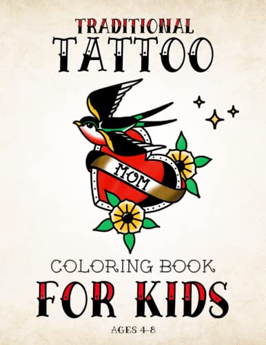 Traditional tattoo coloring book for kids ages 4-8: 50 tattoo designs for kids to color
