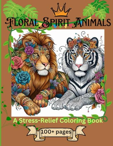 Floral Spirit Animals - A Stress-Relief Coloring Book: Unique animal designs, Flower tattoo, Wild animals with floral tattoos, Floral body art, Jungle animals, Paws and petals, 8.5 x 11 inches