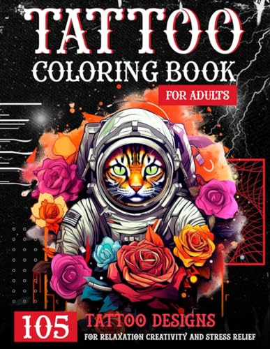 Tattoo Coloring Book for Adults: 105 Tattoo Designs for Relaxation, Creativity and Stress Relief;: Various sketches: Animals, Flowers, Mandalas, ... Coloring Book with Large Designs 8.5 x 11