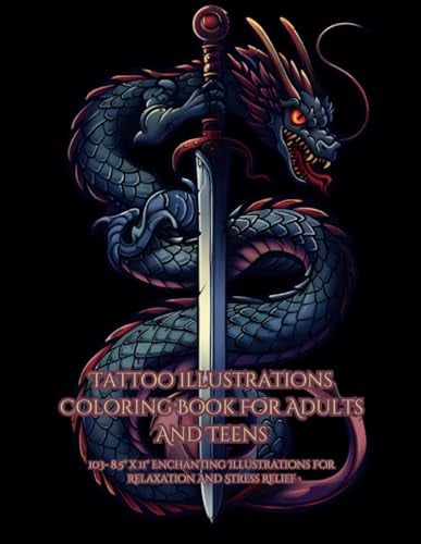 Tattoo illustrations Coloring Book For Adults And Teens: 8.5" x 11" Enchanting Illustrations For Relaxation And Stress Relief