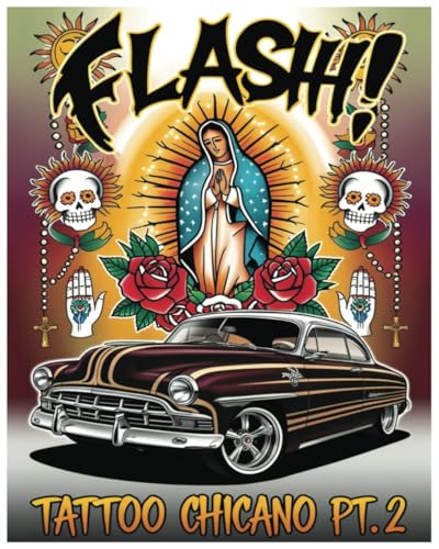 FLASH! Tattoo Chicano pt.2: An 8x10 Adult Coloring Book Featuring 50 Detailed Chicano Tattoo Flash Designs, Including Lowriders, Aztec and Mayan ... Prayer Hands, and Graffiti-Inspired Art