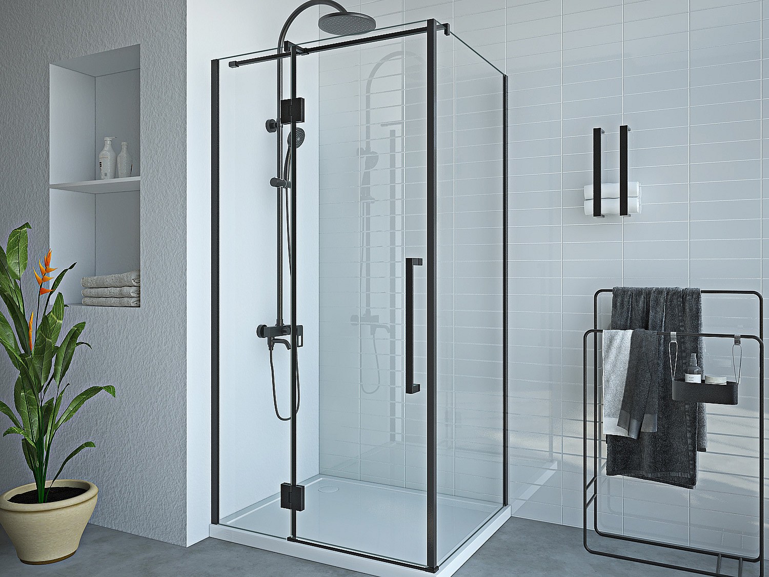 Svängbar duschskärm i mattsvart metall med industriell stil - 80 x 195 cm - TAMRI