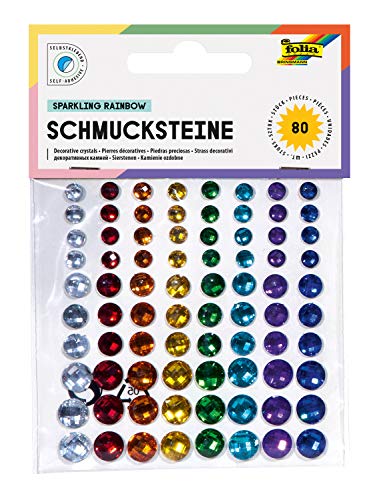 folia 12306 – Dekorativa ädelstenar, gnistrande regnbåge, självhäftande, 80 stycken, med diamantslipning – perfekt för att dekorera och dekorera dina hantverk