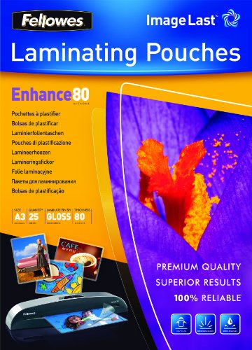 Fellowes lamineringsfolier A3-ImageLast,80 mikron (2 x 80 mikron), 25 stycken, transparent med orienteringshjälp. Perfekt för foton och informationsvarningar med optimal kontrast