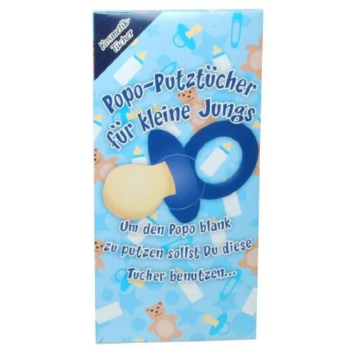 Kosmetikhanddukar "popo-putsdukar Junge" blå, tryckt, innehåller 80 stycken.