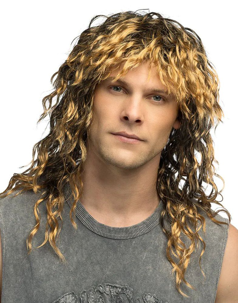 Mörk Blond Krullig 80-tals Rocker Peruk