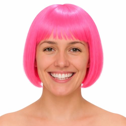 Vokuhila Assi peruk – retrotillbehör för män, 80-tal och 90-tals kostym, neonoutfit, karneval och karneval, Bob-rosa, 10 cm