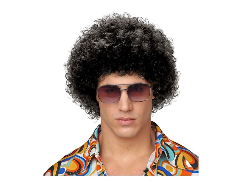 Svart Lockig 80-Tals Peruk