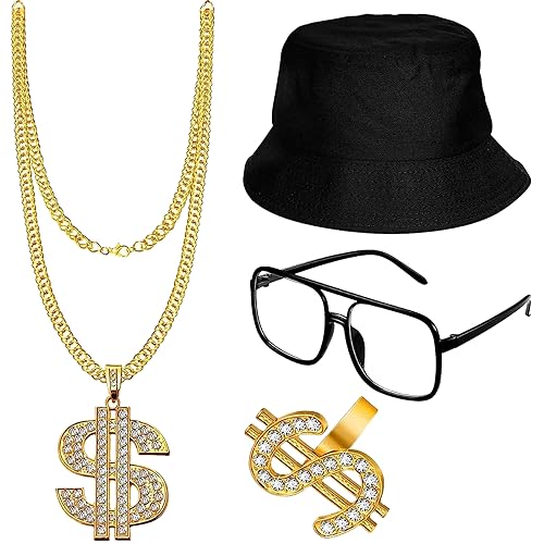 Itian Hip Hop-utklädningskit, set med 4 delar, glasögon, hatt, hänge, ring, 80/90-tals hiphop-kostymer, punk, unisex,