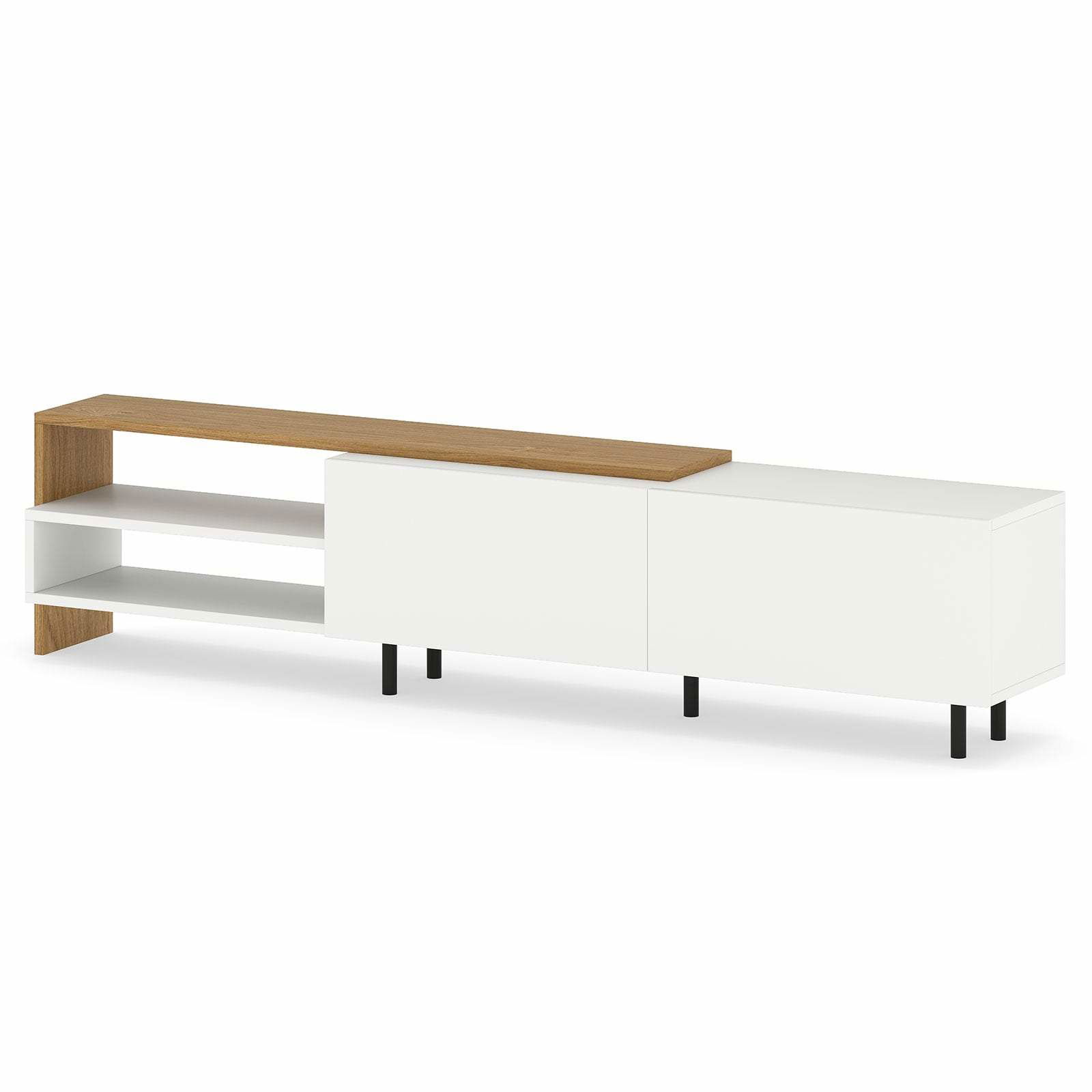 HAINEW TV-stativ rotting TV-skåp TV-bänk för 75–80 tums TV-konsolbord, modernt underhållningscenter, mediakonsol, vit, 180 × 35 × 41 cm