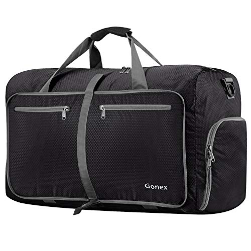 Gonex lätt vikbar resebagage 60 L & 80 L & 100 L duffel väskor övernattningsväska/sportväska för resor sport gym semester Svart 80L