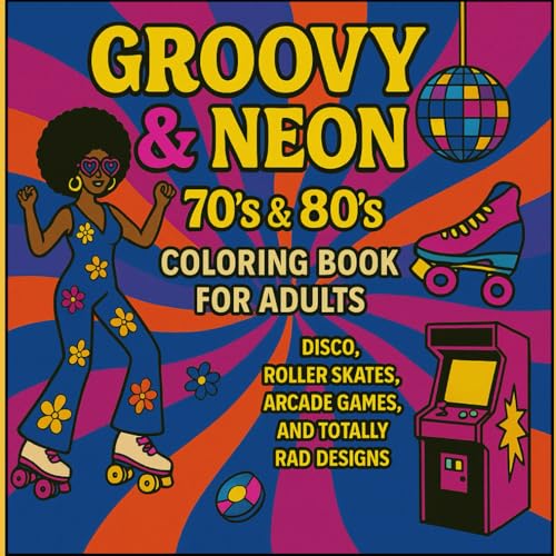 Groovy & Neon: 70’s & 80’s Coloring Book for Adults: Disco, Roller Skates, Arcade Games, and Totally Rad Designs