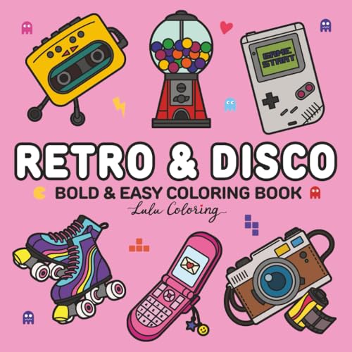 Retro & Disco: 80s and 90s Nostalgia Bold & Easy Coloring Book for Adults and Teens, 50 Hand-drawn Coloring Pages, Cute Retro Designs, Fun Throwback ... Creative Expression & Stress Relief
