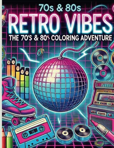 Retro Vibes: A 70s & 80s Coloring Adventure: Nostalgic Adult Coloring Book with Vintage Pop Culture, Disco, Arcade, Music, and Neon Aesthetic Designs