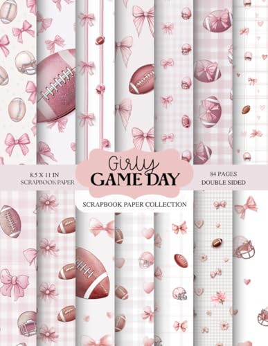 Girly Game Day Scrapbook Paper Collection: 84 Double-Sided Pages · 8.5 x 11 Inch Scrapbook Paper Pad with Pink Footballs, Helmets, Bows, Hearts & Coquette Aesthetic Patterns