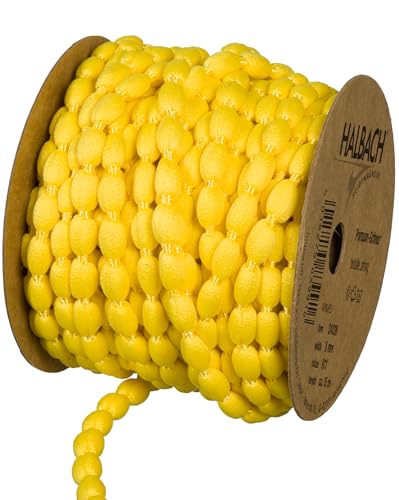Halbach Sidenband pompom bård | bredd 8 mm längd 15 m | Band med tofsar som pom ponsgirlang, bröllopsdekoration, trädgårdsfestdekoration | färg: gul