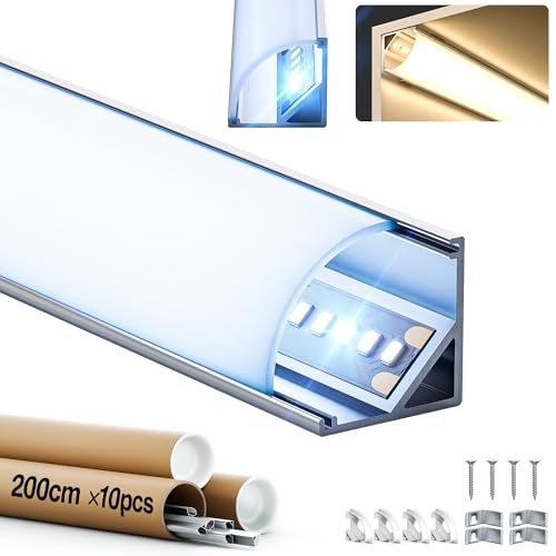GEEKLUX Profile Alu pour Ruban LED angulaire 2 m x 10 (20 m) Profilé aluminium V-form 45°, pour band LED jusqu'à 10 mm avec Diffuseur LED, häll plafond, escalier, mynt – 15,8 x 15,8 mm