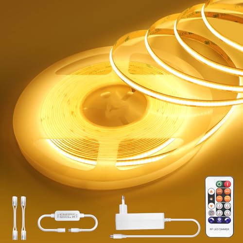 luktix COB LED-remsa 2 m, LED-remsa varm vit 2 700 K, 24 V dimbar LED-band, CRI92, 8 mm bredd, med fjärrkontroll och strömförsörjning, för heminredning, kök, spegel
