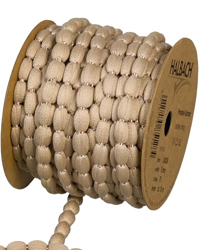Halbach Sidenband pompom kant | bredd 8 mm längd 15 m | Band med tofsar som pom ponsgirlang, bröllopsdekoration, trädgårdsfestdekoration | färg: beige