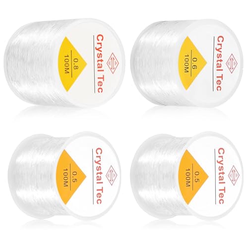 Elastiskt band för armband, 4 rullar 100 m 0,5/0,6/0,8 mm elastiskt band för armband nylontråd transparent elastisk smyckestråd gummitråd, slitstark transparent tråd för pärlsmycken