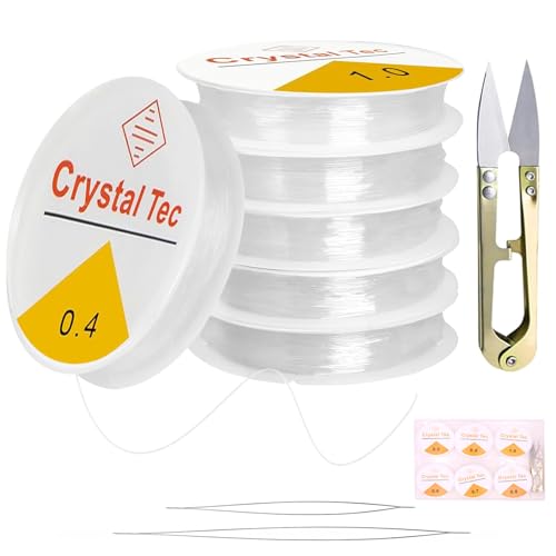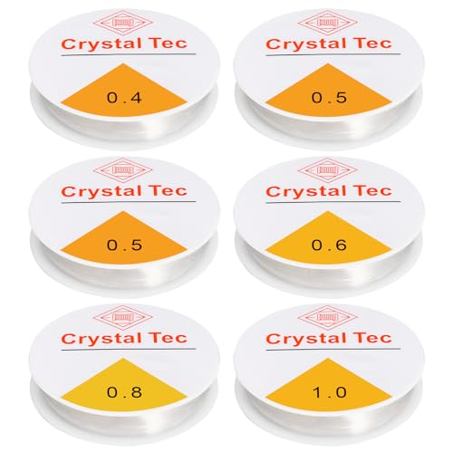 Elastiskt band för armband 0,4 mm 0,5 mm 0,6 mm 0,8 mm 1 mm, armband elastiskt snöre, transparent nylonsnöre för pärlor (6 rullar)