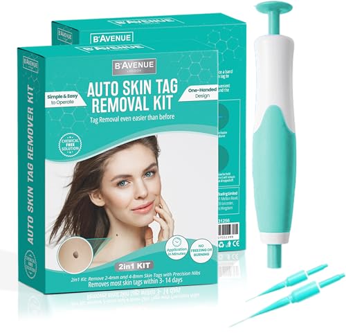 B'Avenue London borttagningskit för hudmärken – 2-i-1 hudmärkesborttagningsset med 2 nålar, 40 band – 2–4 mm och 4–8 mm taggband borttagning av hudmärken – hudetikettband för små och medelstora taggar