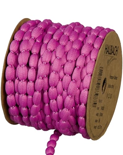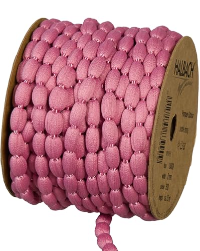 Halbach Sidenband pompom kant | bredd 8 mm längd 15 m | Band med tofsar som pom ponsgirlang, bröllopsdekoration, trädgårdsfestdekoration | färg: rosa