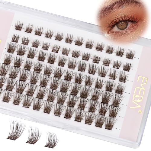 EMEDA Mörkbruna individuella klusterfransar D Curl 8mm DIY ögonfransförlängning Clear Band Natural Look Brown Lash Clusters Färgade klusterfransar (Mörkbrun-8mm)