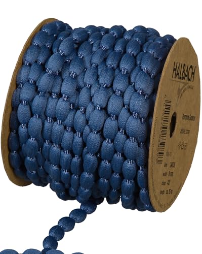 Halbach Sidenband pompom bård | bredd 8 mm längd 15 m | Band med tofsar som pom ponsgirlang, bröllopsdekoration, trädgårdsfestdekoration | Färg: mörkblå
