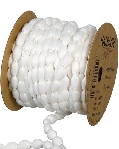 Halbach Sidenband pompom kant | bredd 8 mm längd 15 m | Band med tofsar som pom ponsgirlang, bröllopsdekoration, trädgårdsfestdekoration | färg: vit