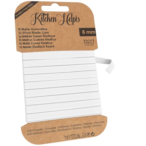 Kitchen Helpis® Qualitäts-Gummilitze, 10 Meter, 8 mm breite, Kochfest, elastisches Band, Gummiband, Gummizug, Flachgummi, Hosenzug, Gummikordel, elastische Schnur