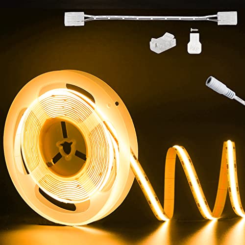 COB LED-remsa varm vit 2 000 K DC 24 V, PAUTIX 6 m 504 LEDs/M CRI80 LED Strip Lights, LED band för hem kök gör-det-själv belysningsprojekt med 8 mm cob-kontakt (strömförsörjning ingår ej)