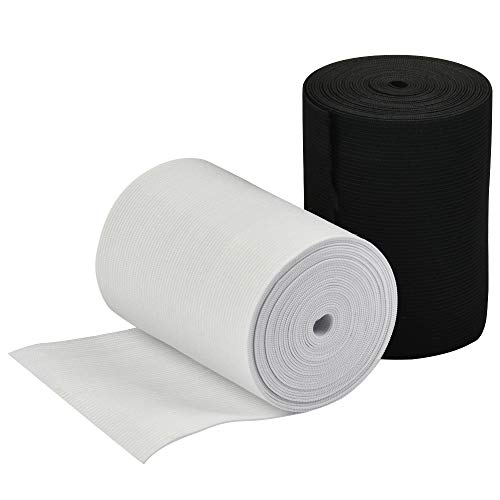 FOROREH 2 st elastiskt band, elastisk sömnadsremsa, rulle av polyestertråd, svart och vit elastisk polyestertejp, multifunktionell för gör-det-själv, sömnad, förpackning -10 cm x 4 m x 0,8 mm