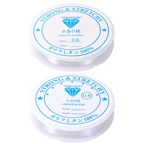 Redamancy elastisk smyckestråd, 2 spolar transparent pärltråd, 0,6 mm och 0,8 mm osynligt nylonsnöre, slitstarkt band för armband, för pärlsmycken armband hantverk
