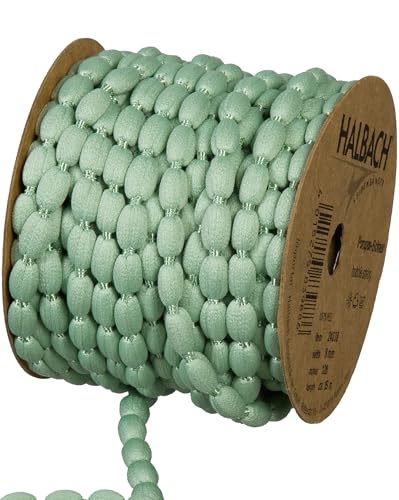 Halbach Sidenband pompom kant | bredd 8 mm längd 15 m | Band med tofsar som pom ponsgirlang, bröllopsdekoration, trädgårdsfestdekoration | färg: mynta
