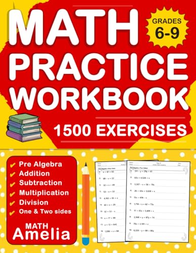 Pre Algebra Workbook For Grades 6-9 ( One & Two Side ): Pre Algebra Practice Workbook For 6th, 7th, 8th Grade And 9th Grade With 1500 Exercises And ... | Pre Algebra Math Homework For Grades 6-9