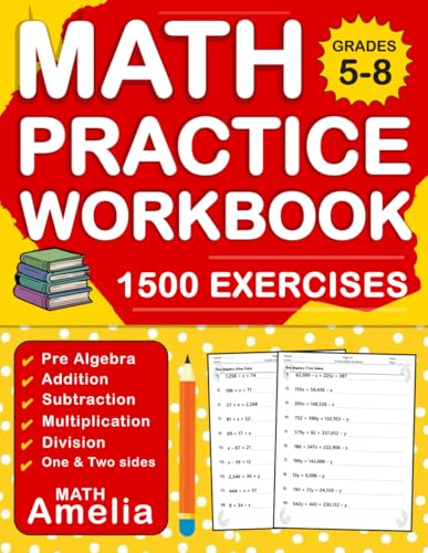 Pre Algebra Workbook For Grades 5-8 ( One & Two Side ): Pre Algebra Practice Workbook For 5th, 6th, 7th Grade And 8th Grade With 1500 Exercises And ... | Pre Algebra Math Homework For Grades 5-8