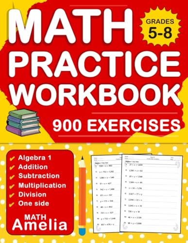 Algebra 1 Workbook For Grades 5-8 With Answer Key ( One Side ): Algebra 1 Practice Problems For 5th, 6th, 7th & 8th Grade With 900 Exercises | Algebra 1 Worksheets For Grades 5-8