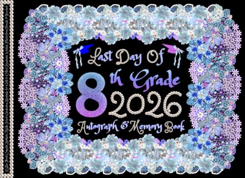 Last Day of 8th Grade Autograph & Memory Book: A Blue Floral Coquette Aesthetic Middle School Graduation Keepsake for Girls to Collect Signatures, Wishes, Photos from Friends & Teachers