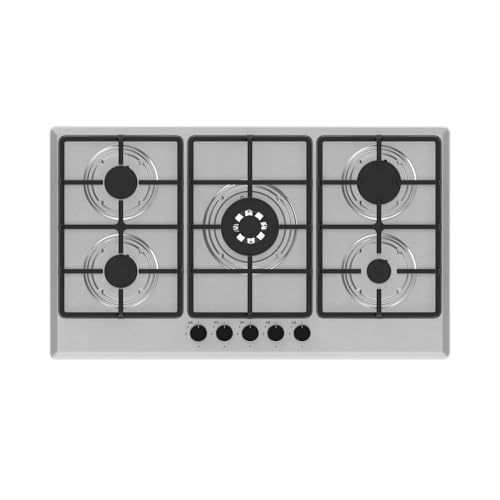Wintem Spishäll 5 gasbrännare 90 cm i rostfritt stål med gjutjärnsgaller – professionell gasspis för hemmet