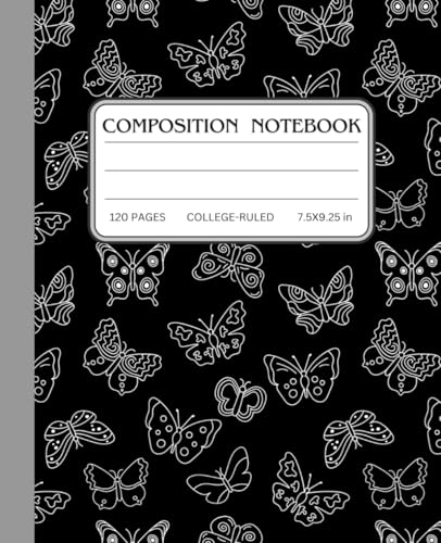 Gothic Butterfly Composition Notebook: College Ruled Notebook | 7.5" x 9.25", 120 Pages, Elegant Black & White Butterfly Aesthetic, Perfect for School, Work, and Journaling
