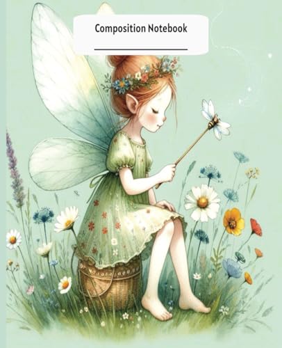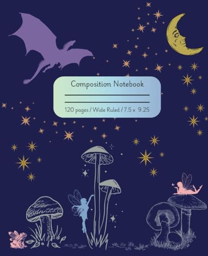 Cute Magical Composition Notebook / Journal with Fairies Dragons Moon and Stars | Wide Ruled Notebook, Composition Notebook Wide Ruled | 7.5 x 9.25, 120 Pages | Perfect for Kids, Teens and Adults