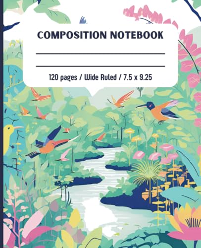 Composition notebook: Vibrant jungle design | Wide Ruled Notebook | Composition notebook wide ruled, 7.5 x 9.25, 120 Pages, For kids, teens and adults