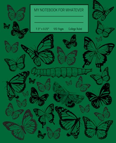My Notebook For Whatever - Butterflies and Caterpillars- Green Cover - 7.5 x 9.25 with 120 College Ruled Pages - Helpful for School, Office & Home