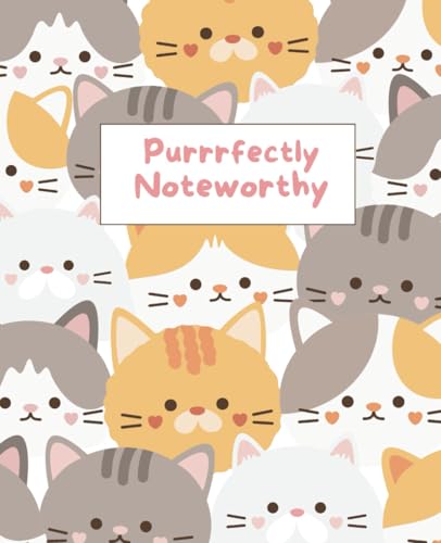 Adorable Cat Composition Notebook: Purrrfectly Noteworthy| Gray, White, Orange and Calico Cats| Wide Ruled Notebook| Composition Notebook Wide Ruled, 7.5 x 9.25, 120 pages, For kids, teens and adults