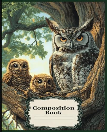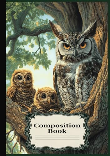 Composition Notebook Vintage Owl Illustration College Ruled 7.5 x 9.25 120 Sheets: Retro Birds Art for Everyday Notes and Ideas