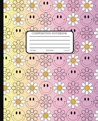 Smiley Daisy Composition notebook | Wide Ruled Notebook | Composition notebook wide ruled, 7.5 x 9.25, 120 Pages, For kids, teens, and adults
