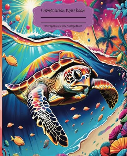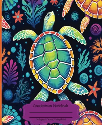 Composition Notebook: Colorful Abstract Sea Turtles on Vibrant Psychedelic Print Background - 7.5" X 9.25" 120 Pages College Ruled