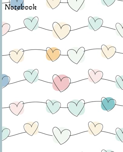Pastel Heart Notebook | Wide Rule Notebook | 7.5 x 9.25, 120 pages | For kids, teens and adults