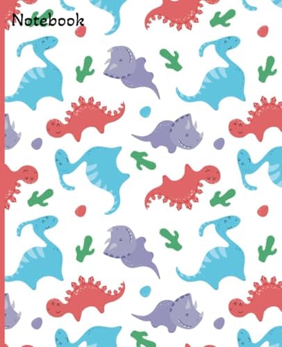 Dino Notebook | Wide Rule Notebook | 7.5 x 9.25, 120 pages | For kids, teens and adults